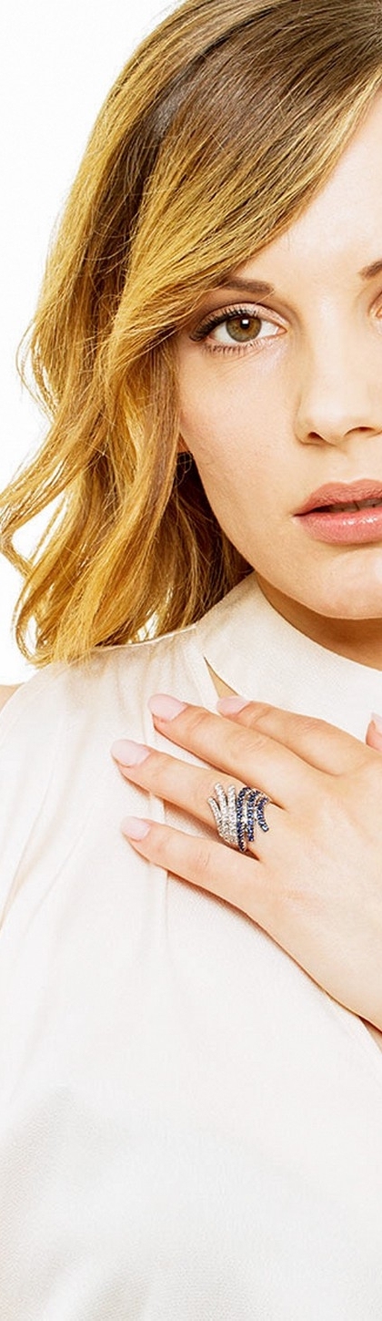 Anello in oro bianco 18k con onde in zaffiri blu e diamanti