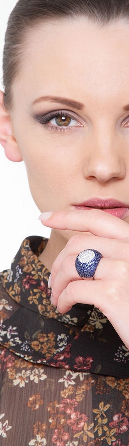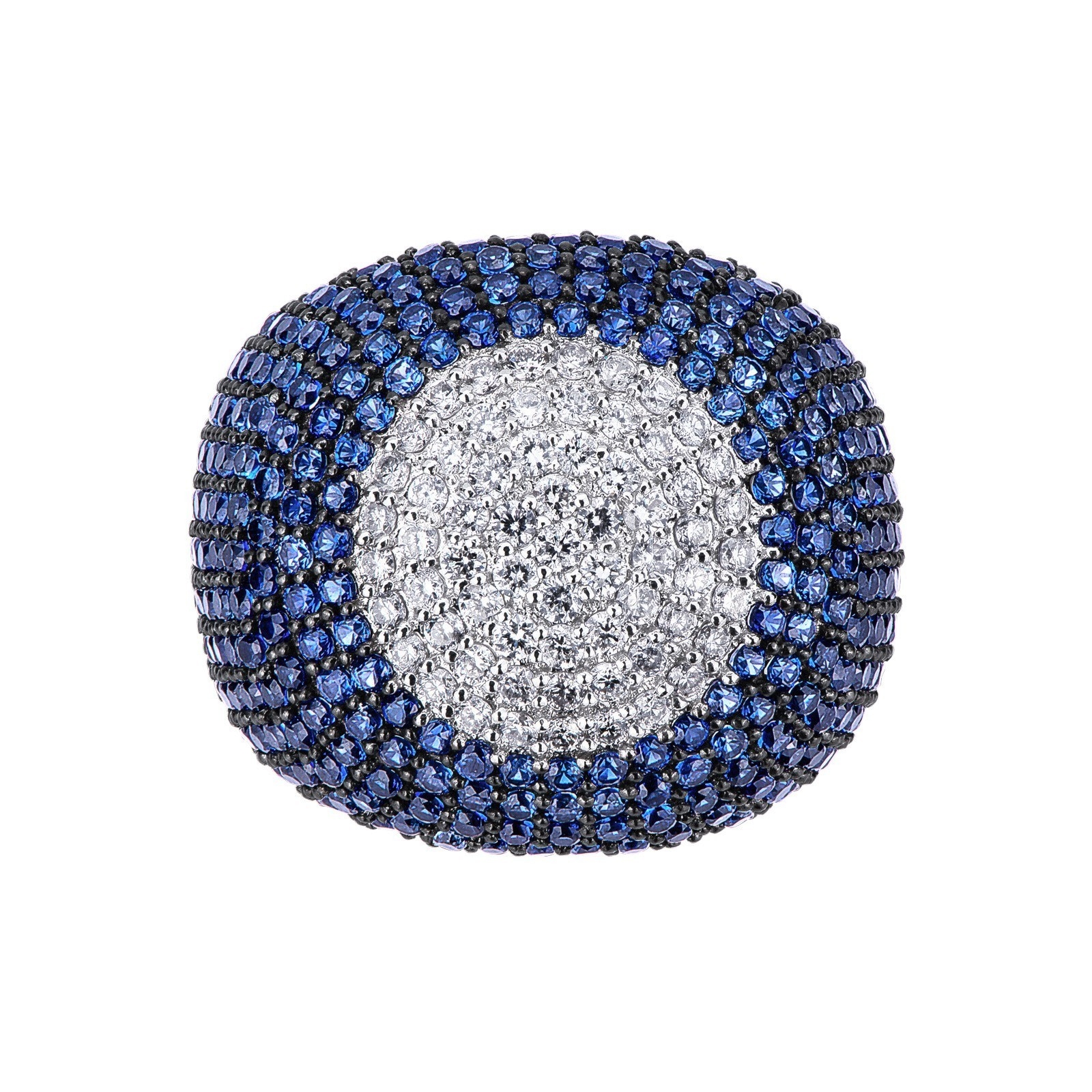 Anello in Oro bianco 18k con pavè di zaffiri blu e diamanti