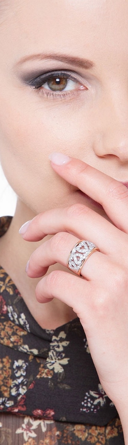 Anello in oro bianco e rosa 18k con cuori in diamanti