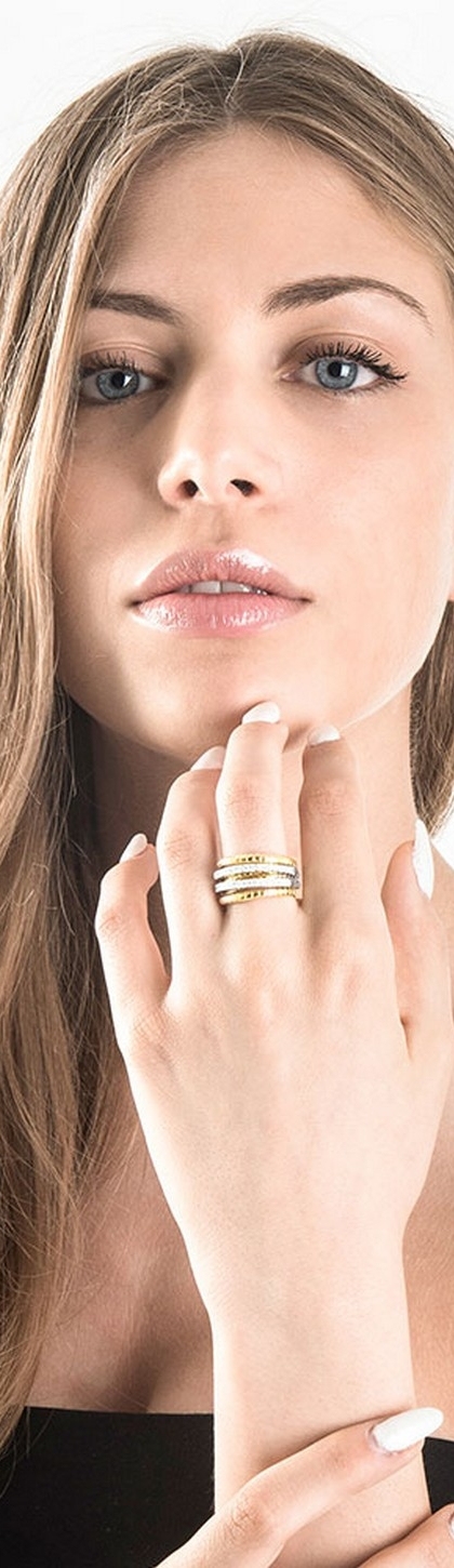 Anello in oro giallo e bianco 18k a file in diamanti