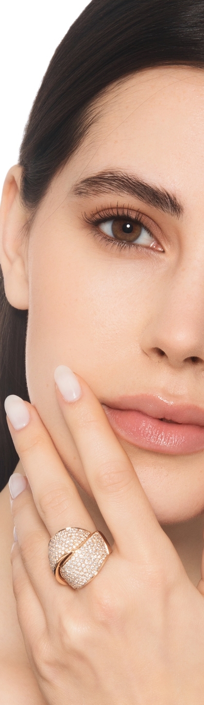 Anello incrocio fascia in oro rosa 18k con diamanti