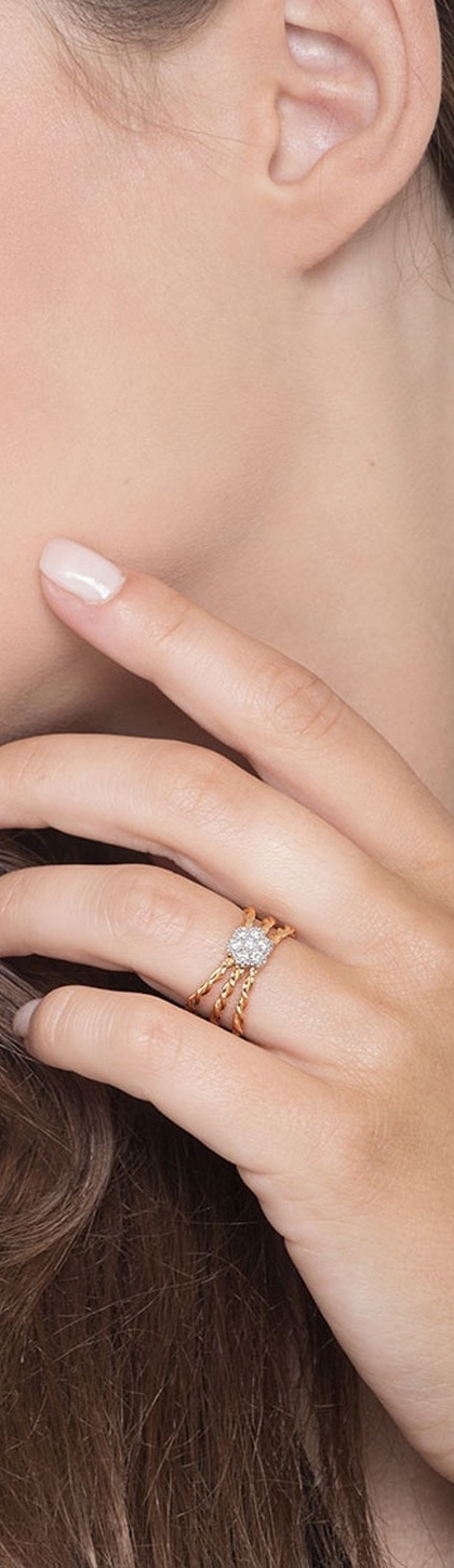 Anello modello fantasia in oro bianco e giallo 18k con diamanti