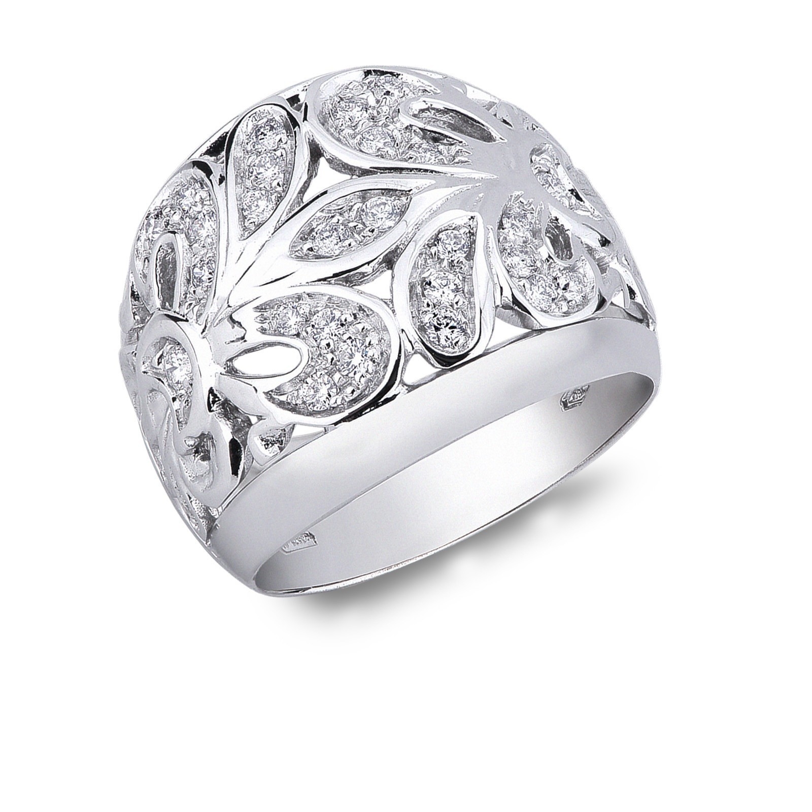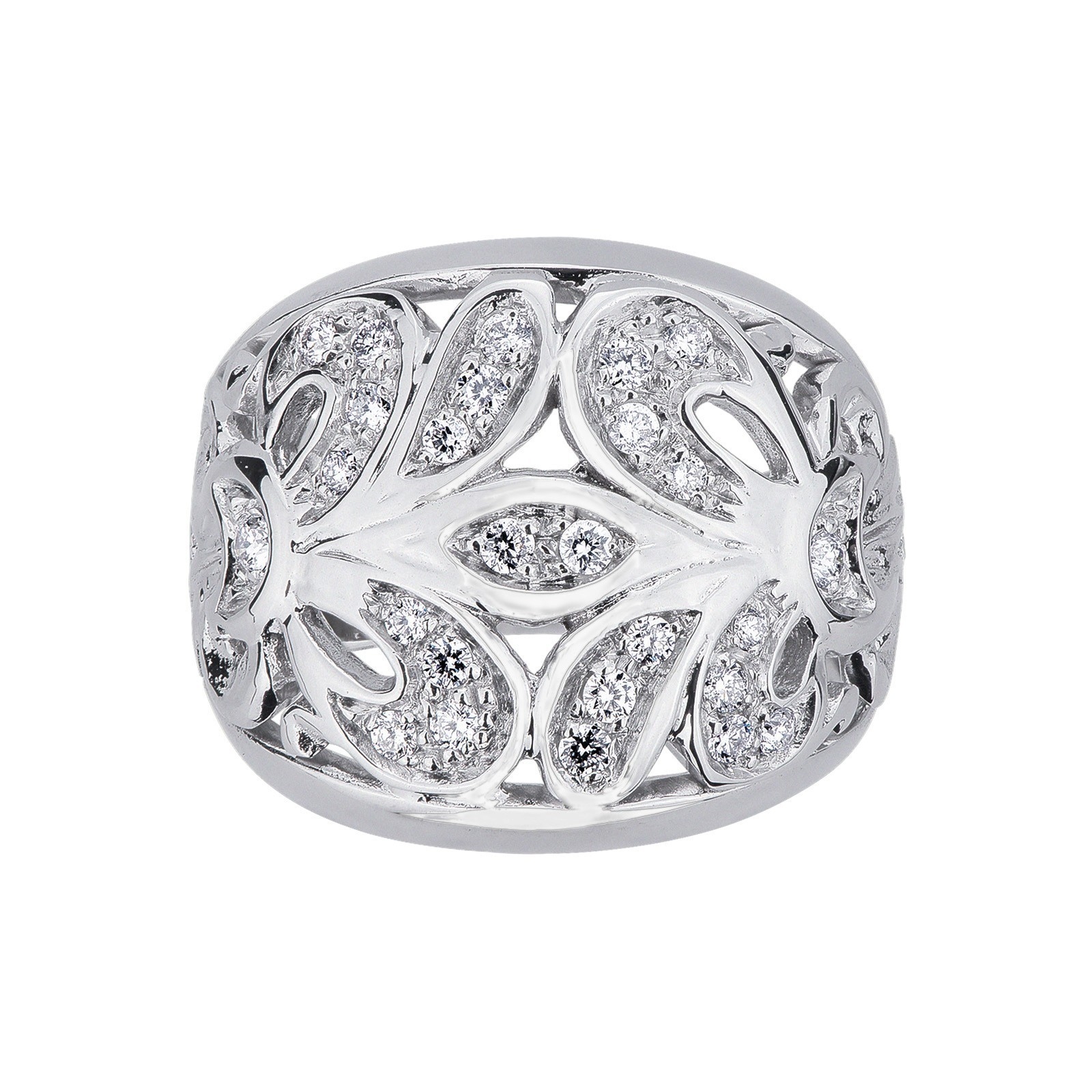 Anello ricamo in oro bianco 18k con diamanti