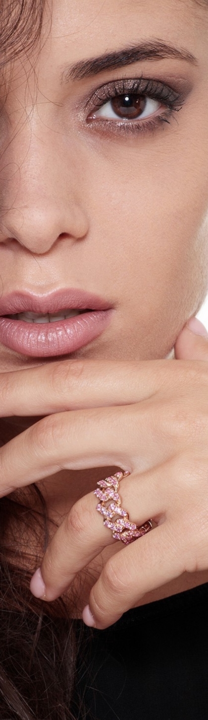 Anello Cuban Link in oro Rosa 18k con Zaffiri Rosa