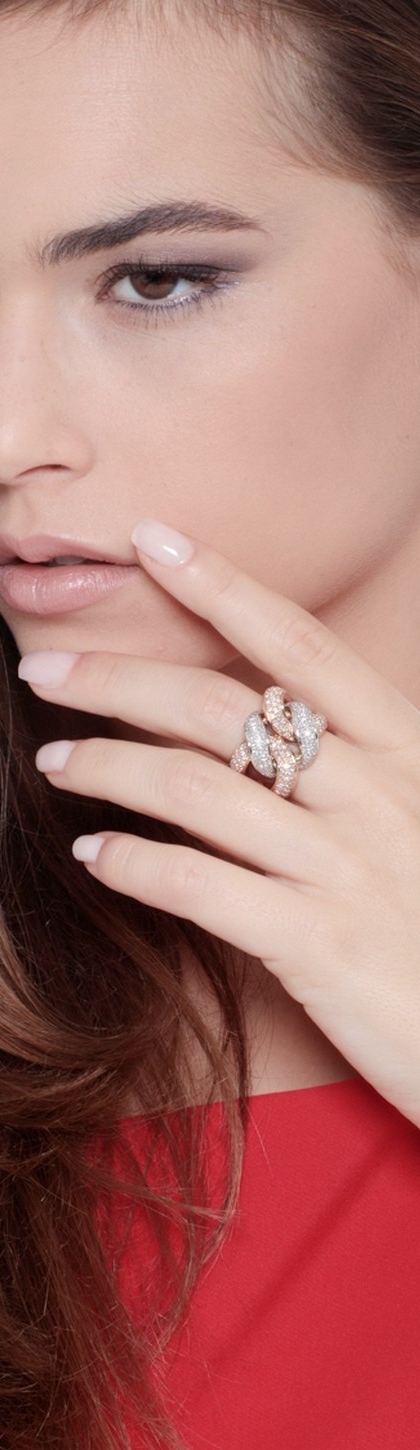 Anello Fascia nodi in Oro rosa e bianco 18k con Diamanti