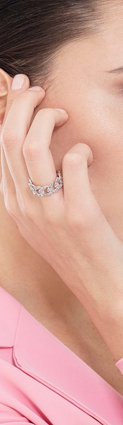 Anello groumette in Oro Bianco 18k con Diamanti, 8 maglie