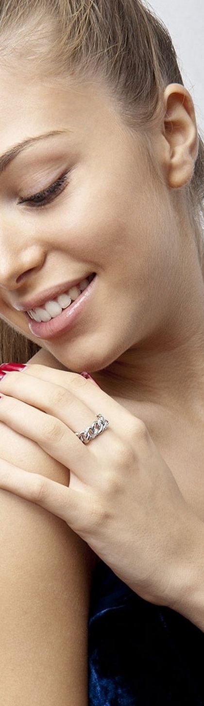 Anello maglia groumette in Oro bianco 18k con 3 maglie incastonate di diamanti