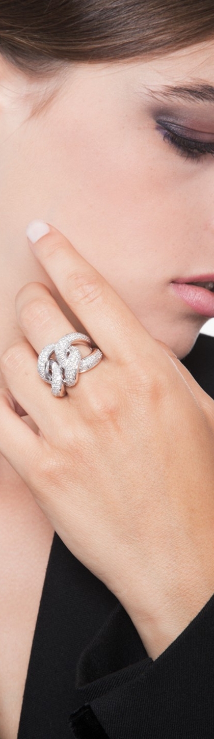 Anello nodo groumette in Oro Bianco 18k con Diamanti