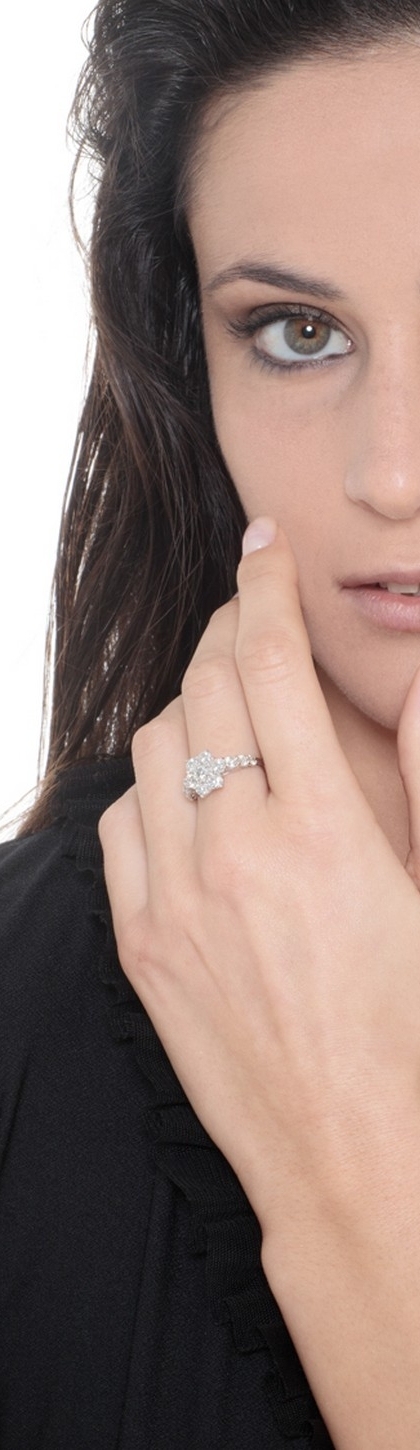 Anello con motivo a fiore in oro bianco 18k con diamanti