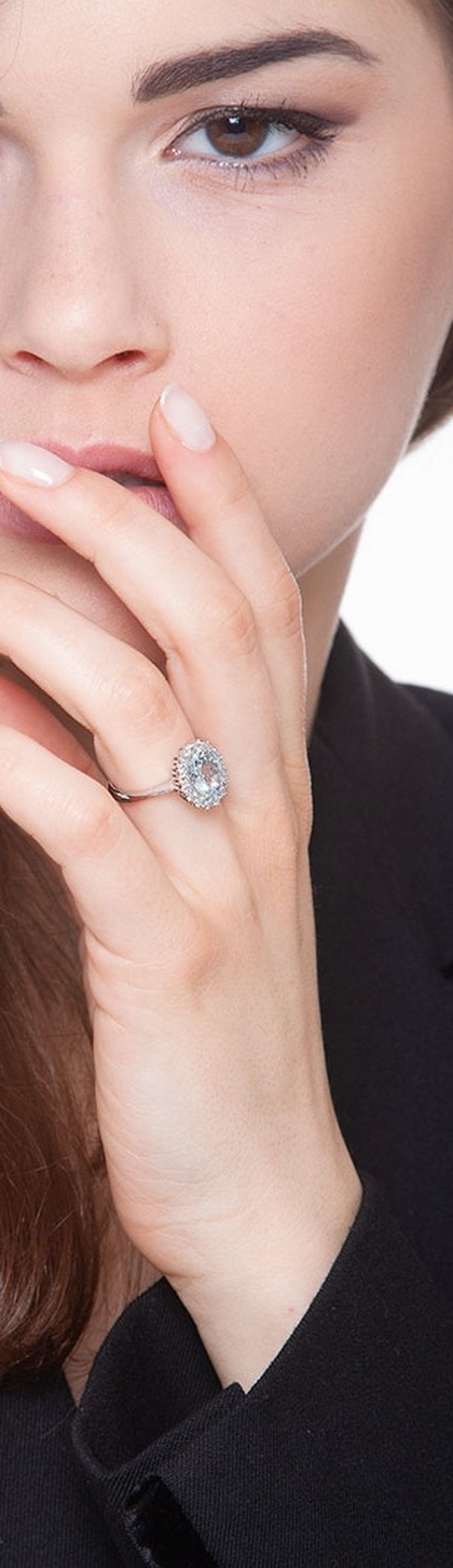 Anello contorno in oro bianco 18k con centro in Acquamarina e Diamanti
