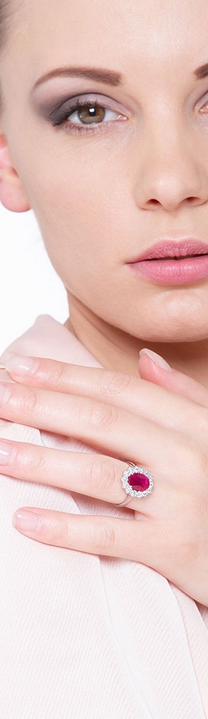 Anello contorno in oro bianco 18k con diamanti e Rubino
