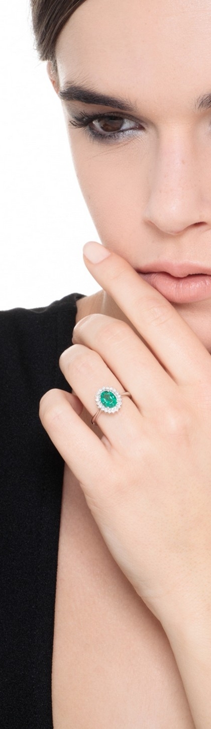 Anello contorno in oro bianco 18k con Smeraldo taglio ovale e diamanti