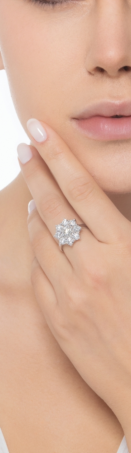 Anello fiore contorno in oro bianco 750 con diamanti