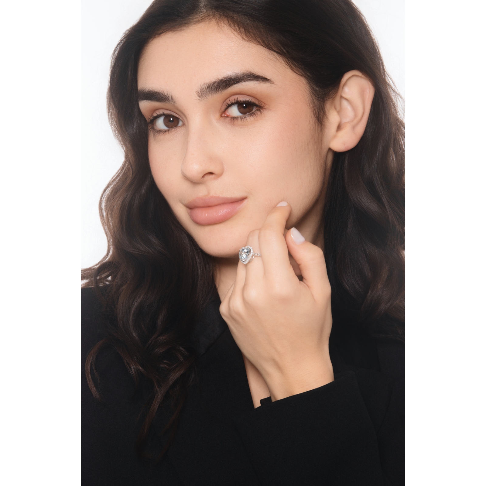 Anello in oro bianco 18k con acquamarina a cuore e contorno in diamanti