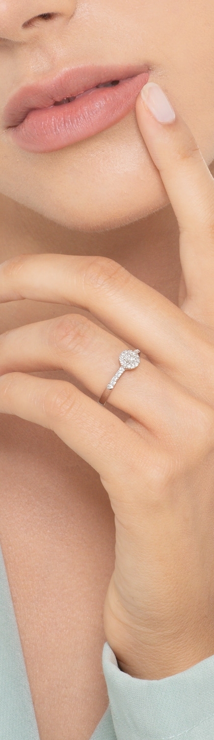 Anello in oro bianco 18k con diamanti a contorno