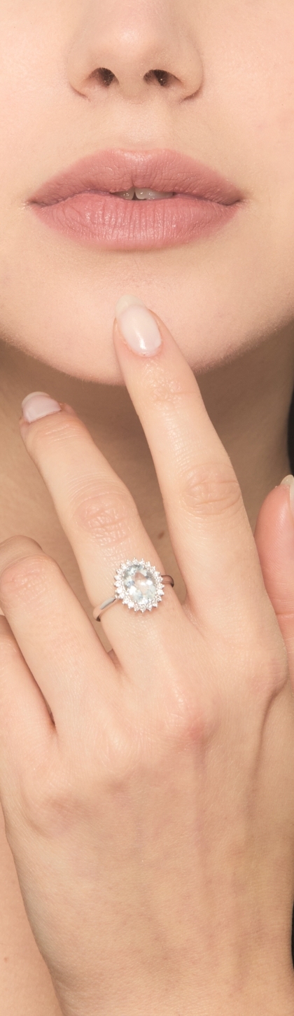 Anello in oro bianco 750 acquamarina ovale e diamanti