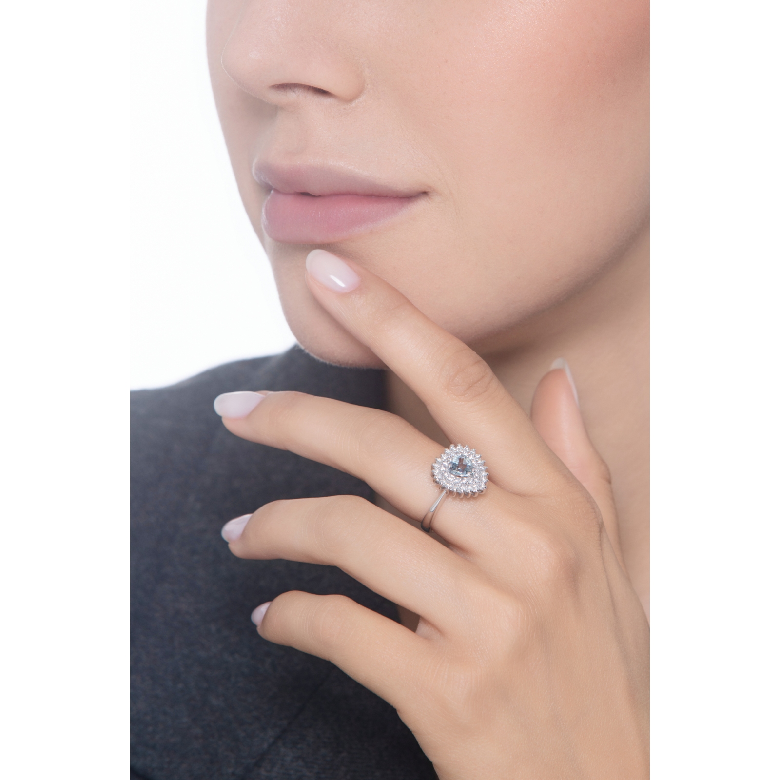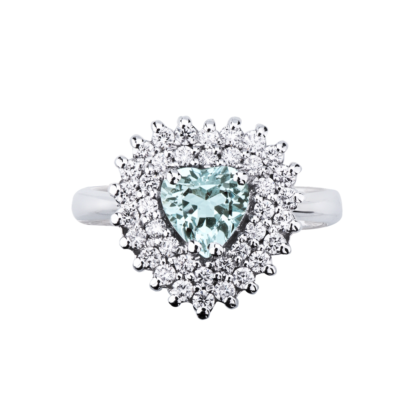 Anello in oro bianco 750 con acquamarina cuore e diamanti