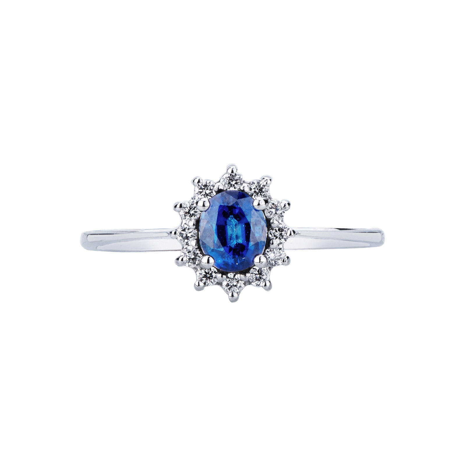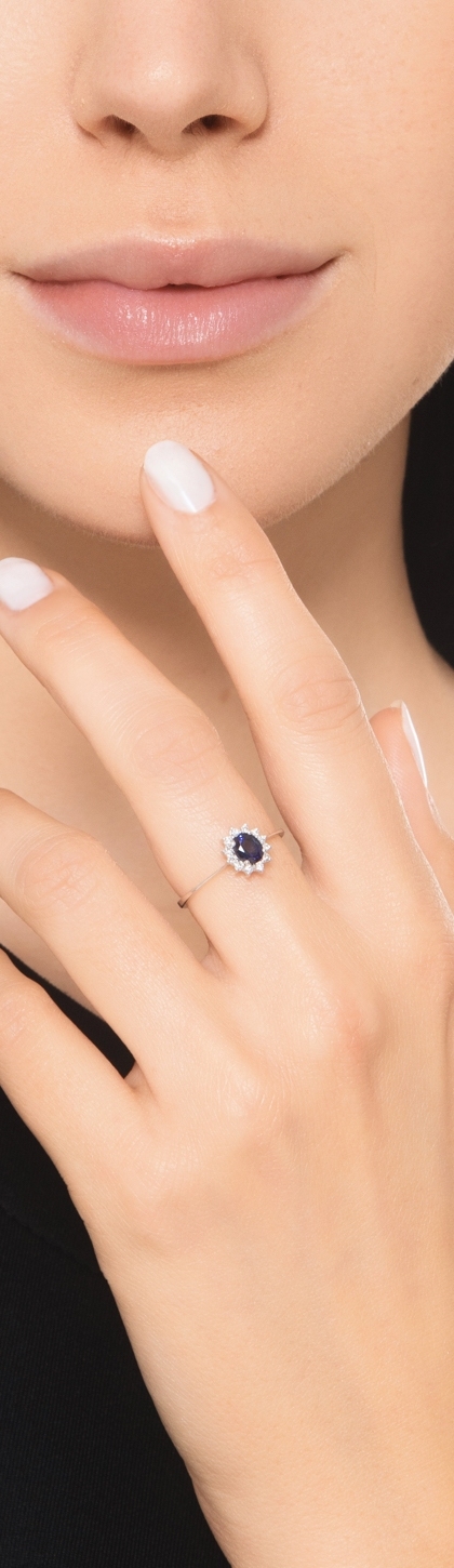 Anello in oro bianco 750 con zaffiro blu e diamanti