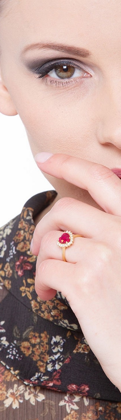 Anello in oro giallo 18k con Rubino a cuore e diamanti