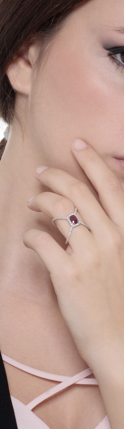 Anello incrociato in oro bianco 18k con Rubino e diamanti
