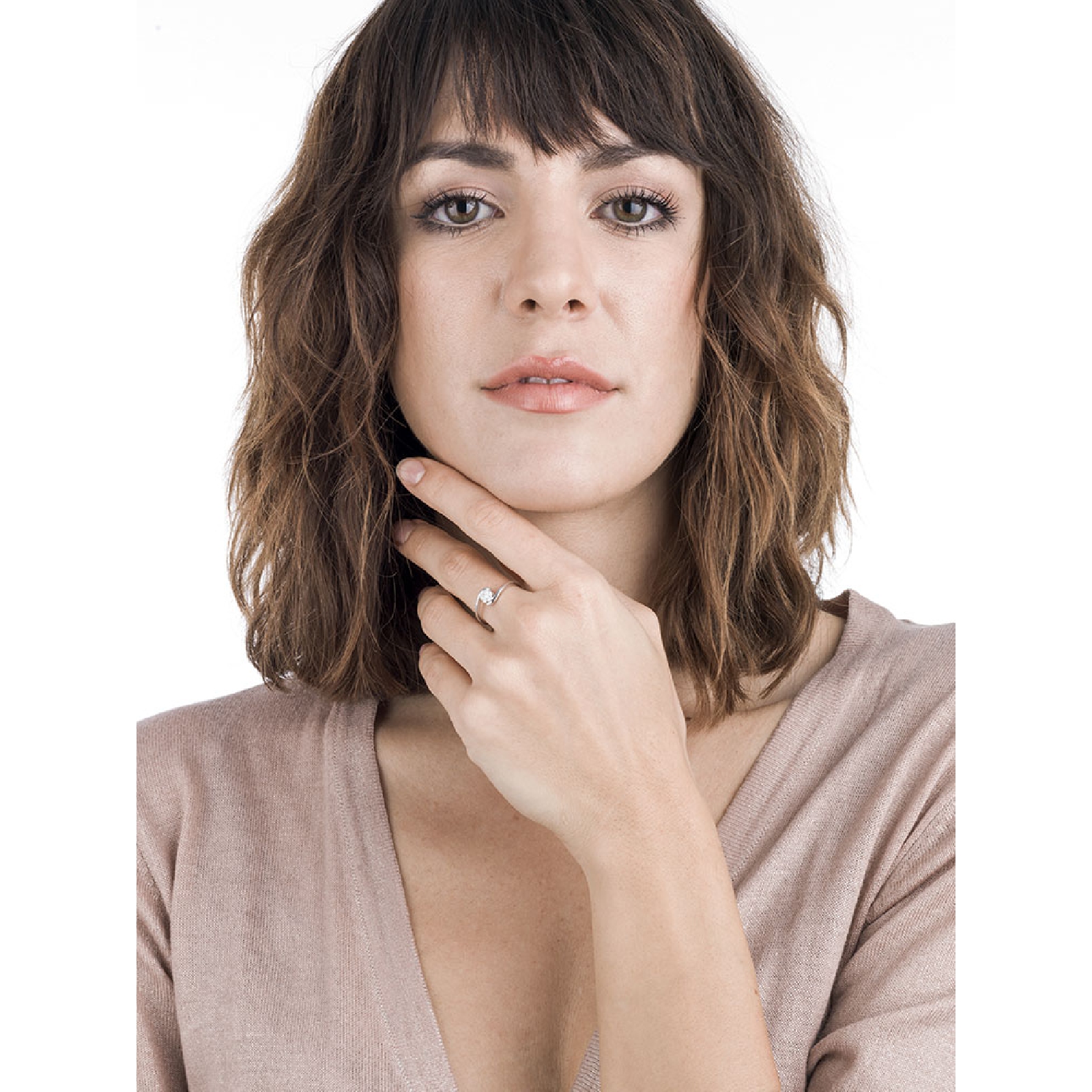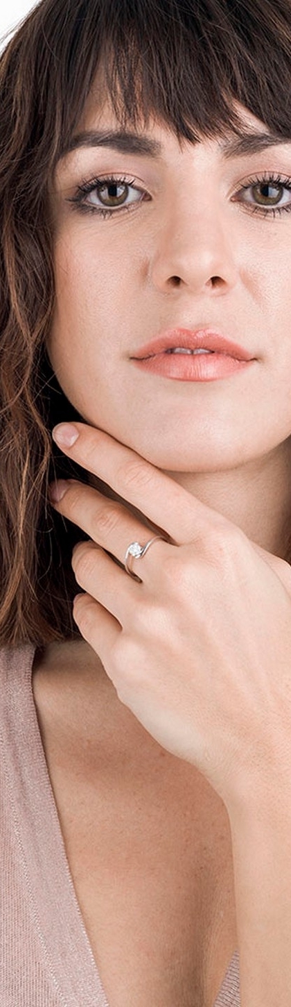 La collezione Illusion è contraddistinta da un gioco di luci. Infatti grazie ai sei piccoli diamanti bianchi incastonati a forma di fiore al centro della fascia, l’anello appare visivamente più luminoso di un solitario tradizionale.