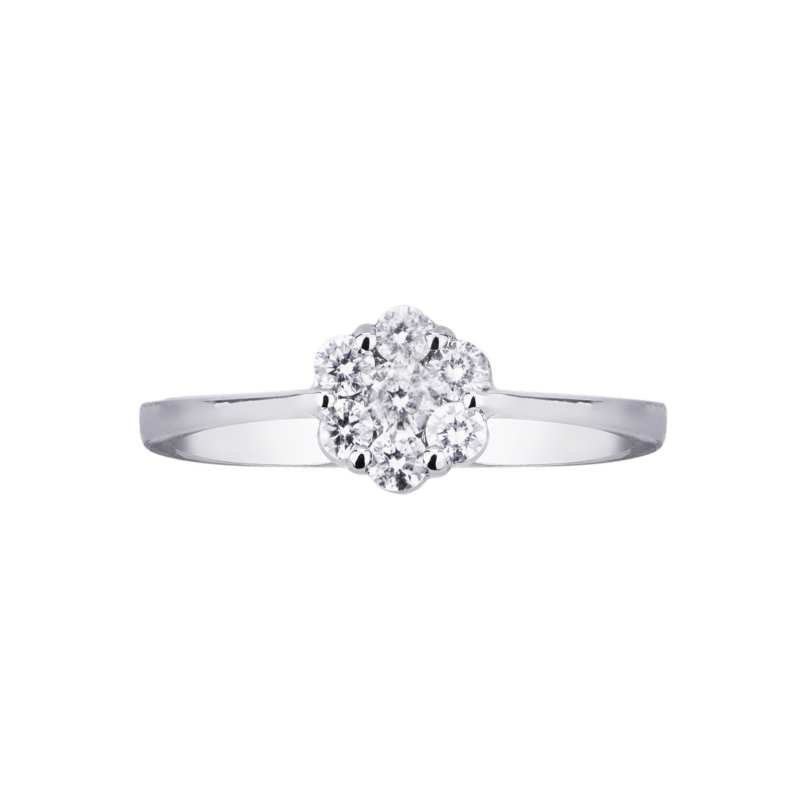 Anello illusione a fiore in oro bianco 18k con diamanti