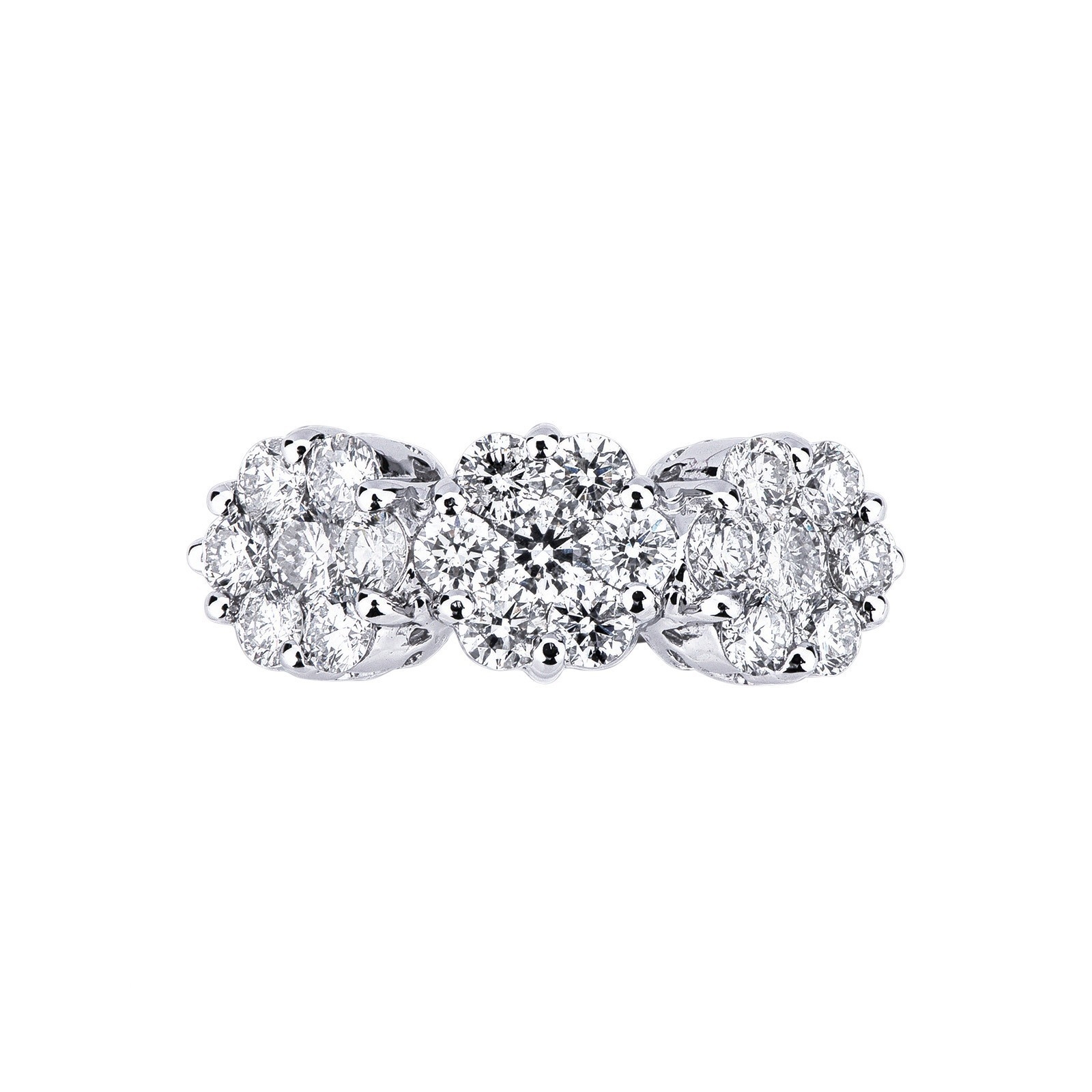Anello illusione in oro bianco 18k a scalare con diamanti