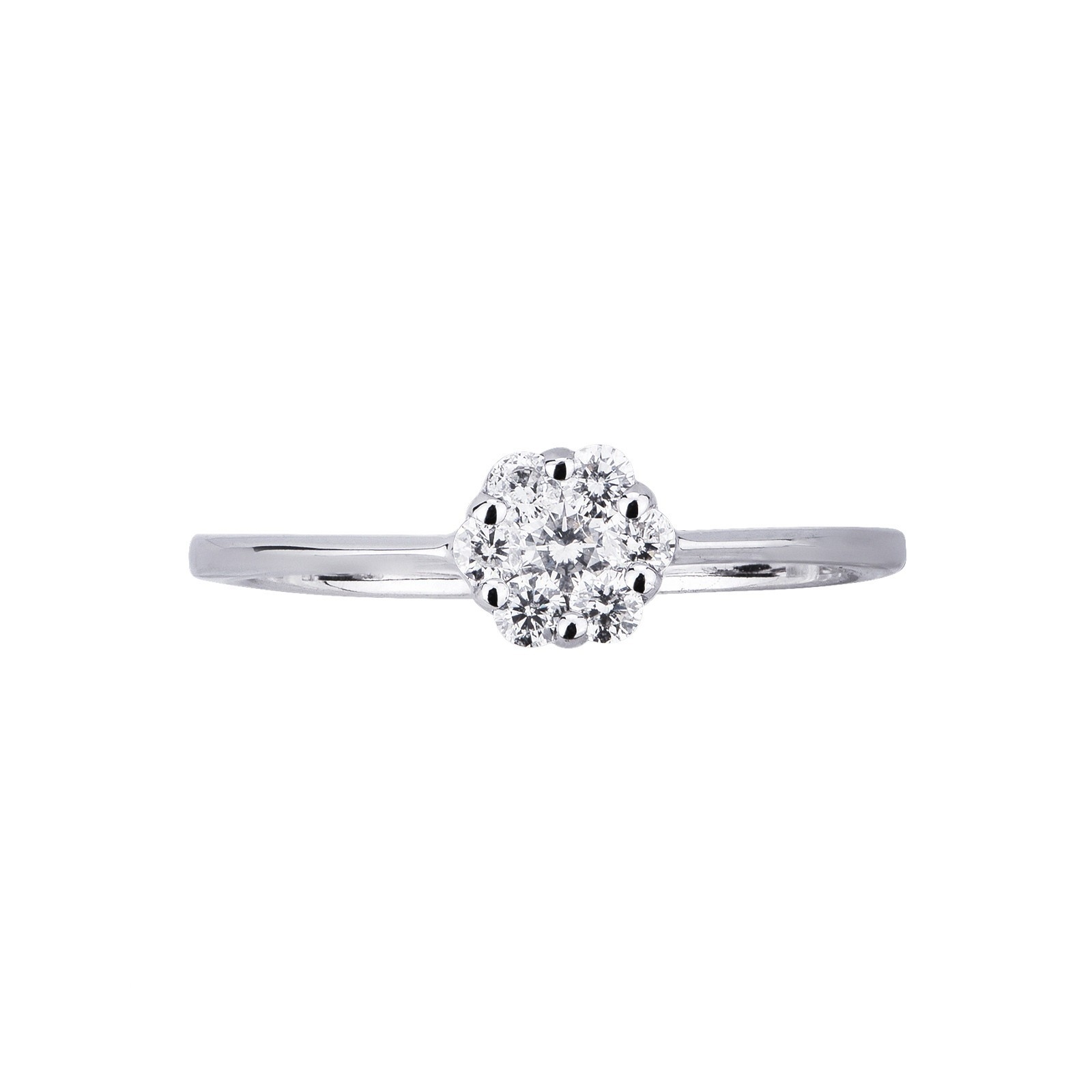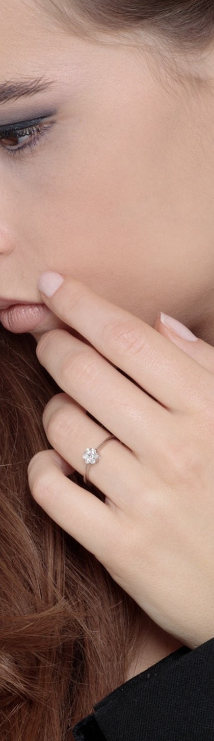 Anello illusione solitario in Oro bianco 18k con Diamanti