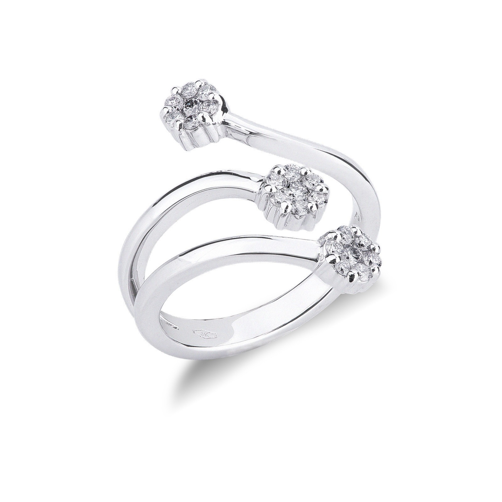 Anello Trilogy Illusione in Oro Bianco 18k con Pavè di Diamanti