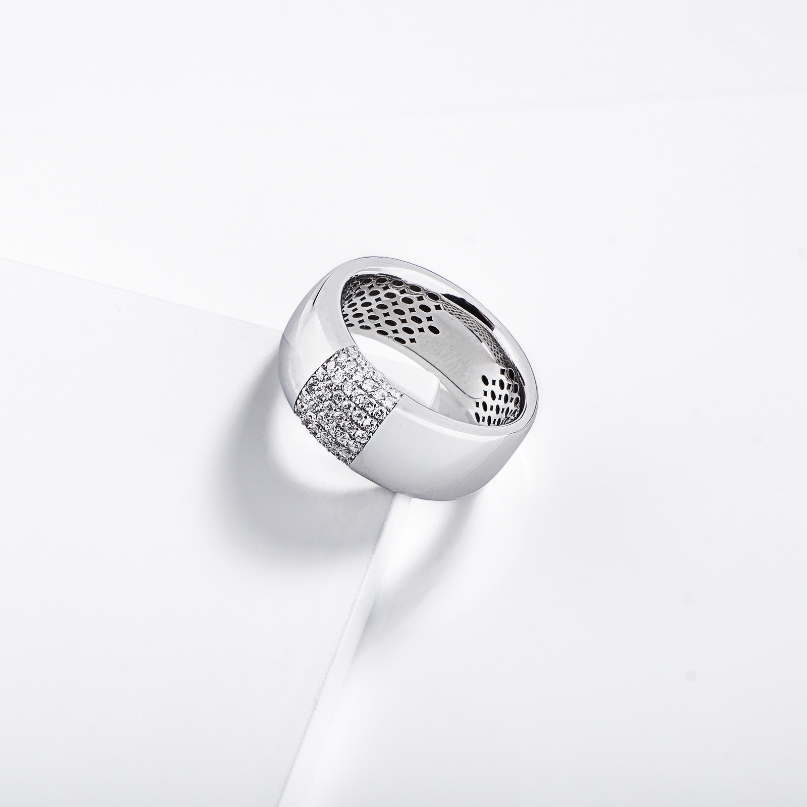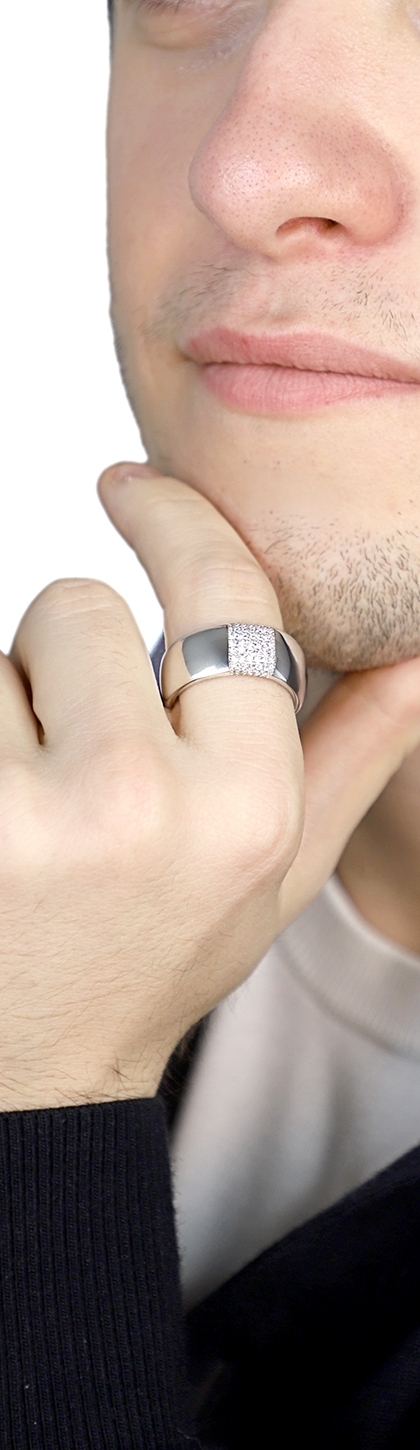 Anello a fascia in oro bianco 18 kt impreziosito da diamanti