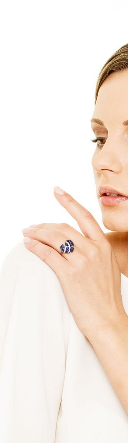 Anello in Oro bianco 18k con Cuore in Pavé di zaffiri blu e diamanti