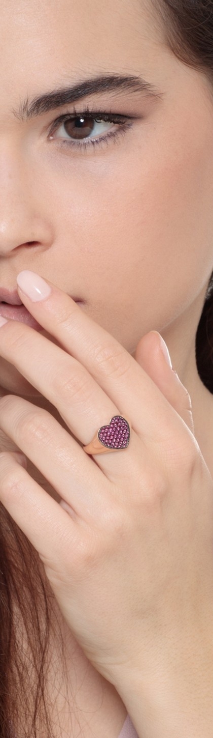 Anello in oro rosa 18k con pavè a cuore in rubini