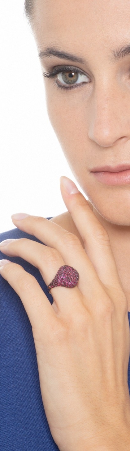 Anello in oro rosa 18k con pavè in rubini