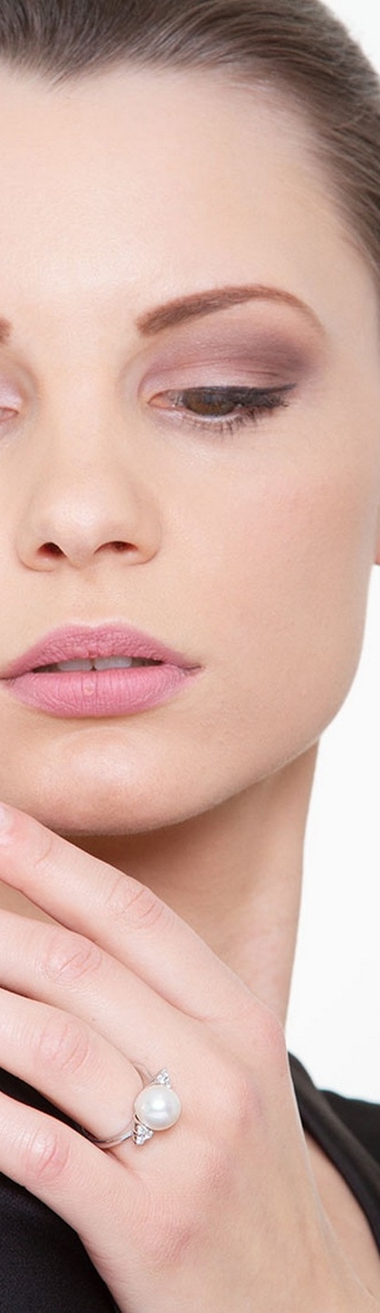 Anello in oro bianco 18k con Perla e 3 diamanti per lato.
