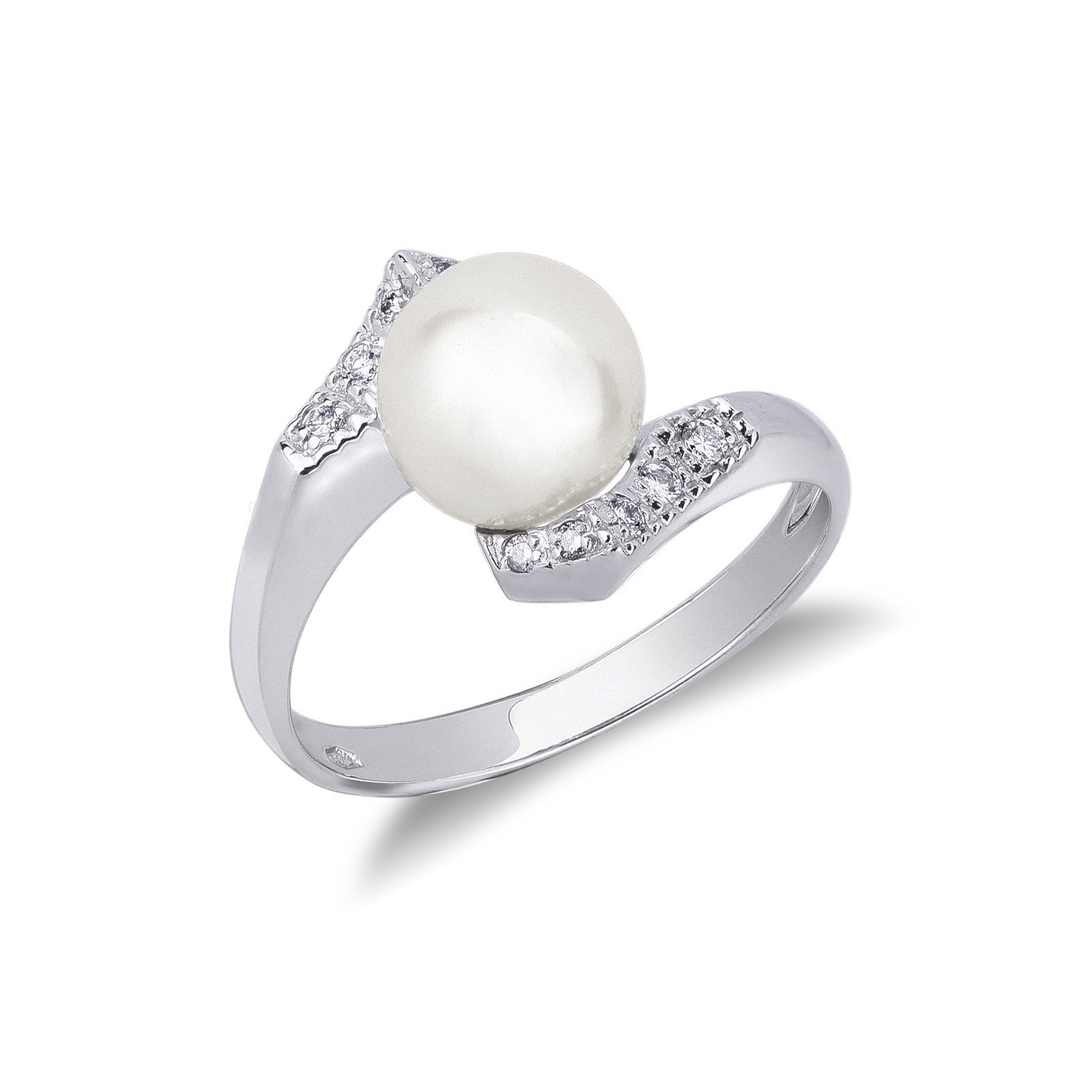 Anello in oro bianco 18k con Perla e diamanti a contrariè.