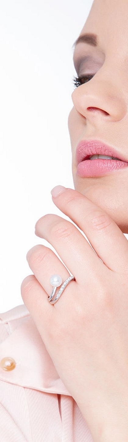 Anello in oro bianco 18k con Perla e diamanti sul gambo.