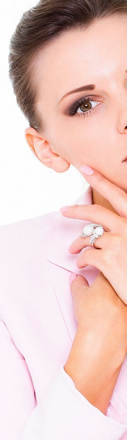 Anello contrariè in Oro bianco 18k con Perle naturali coltivate contornate da diamanti taglio brillante colore G e purezza Vs.