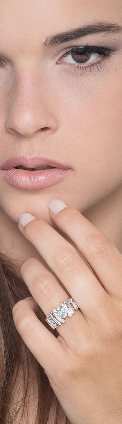 Anello Fascia frammenti in Oro bianco 18k con Acquamarina e Diamanti