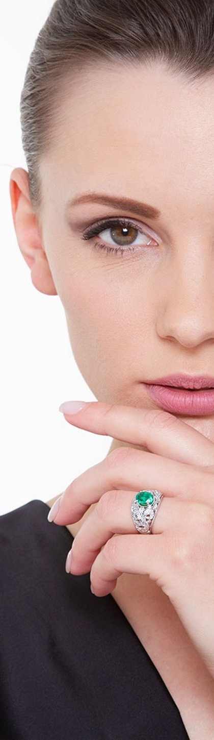 Anello fascia in Oro bianco 18k con Diamanti e smeraldo