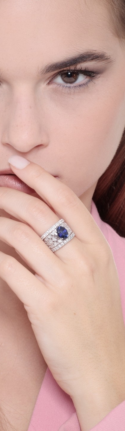 Anello fascia in Oro Bianco 18k con Zaffiro Blu e Diamanti