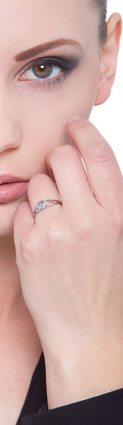 Anello in Oro Bianco 18k ad intreccio con Acquamarina e Diamanti