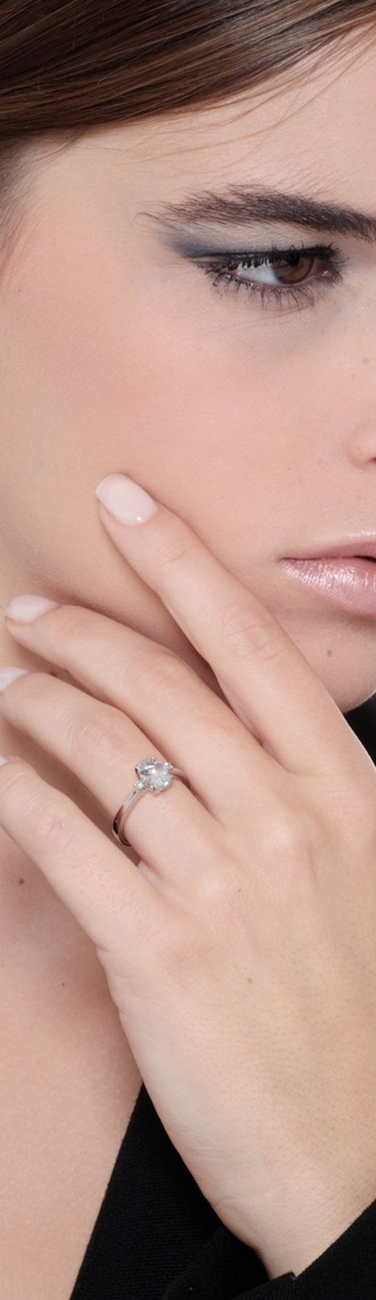 Anello in oro bianco 18k con acquamarina centrale e diamanti ai lati