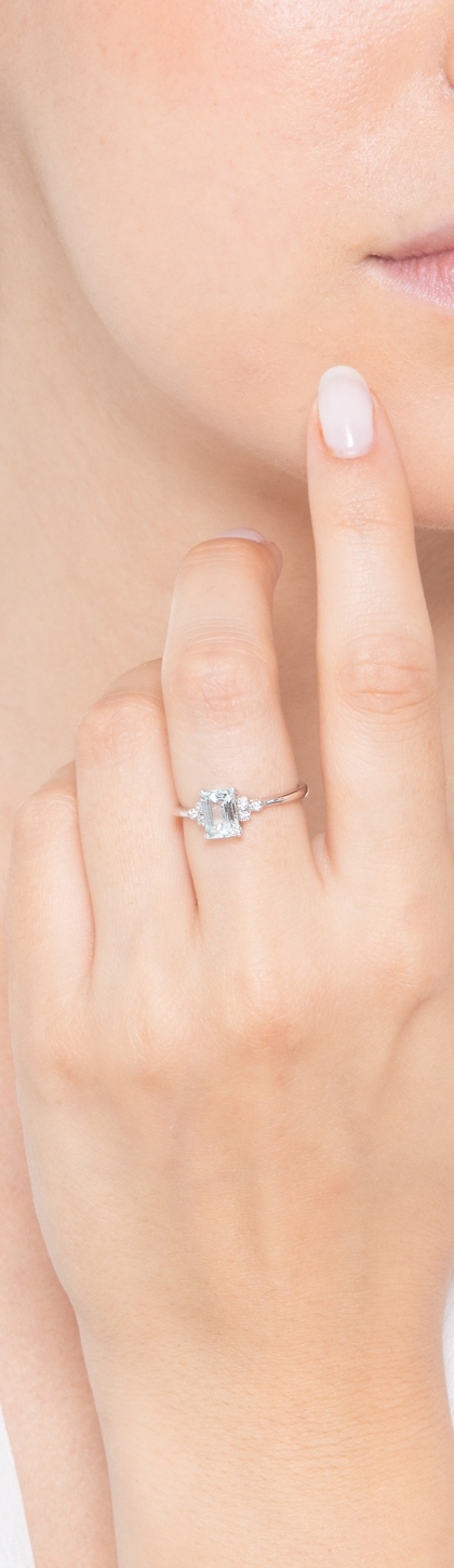 Anello in oro bianco 18k con acquamarina centrale e diamanti
