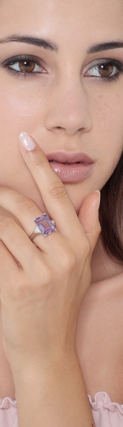 Anello in oro bianco 18k con diamanti e Ametista centrale