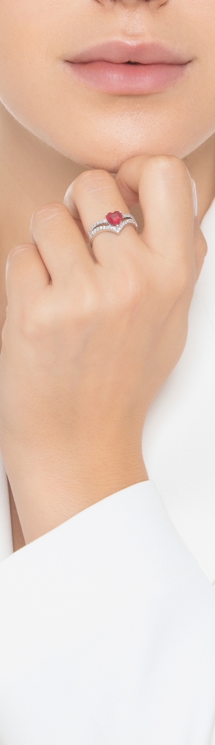Anello in oro bianco 18k con Rubino a cuore al centro e diamanti
