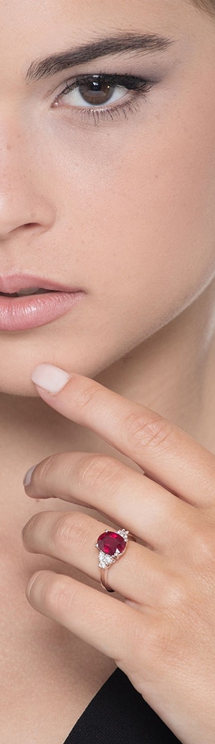 Anello in oro bianco 18k con Rubino al centro e 3 diamanti per lato