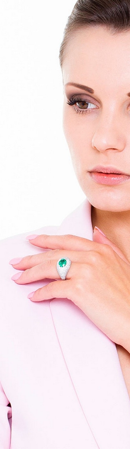 Anello in Oro bianco 18k Con smeraldo centrale e pavè di diamanti