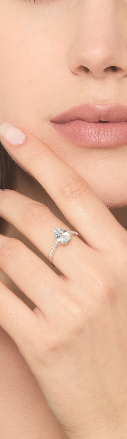 Anello in oro bianco 750 acquamarina e diamanti