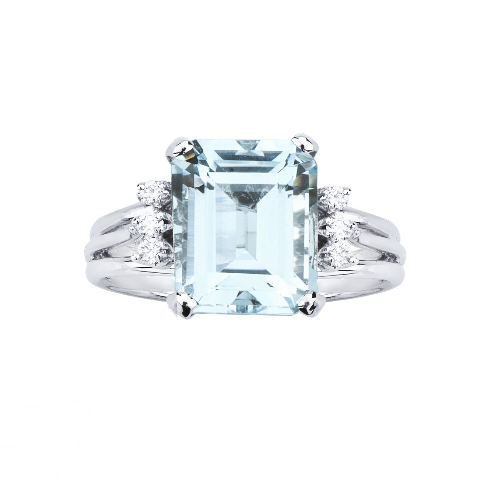 Anello in oro bianco 750 con acquamarina e 3 diamanti per lato