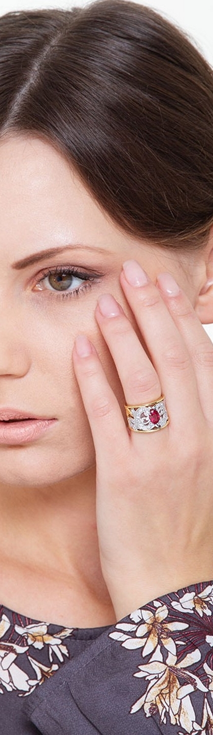 Anello in oro bianco e giallo 18k con rubino e diamanti